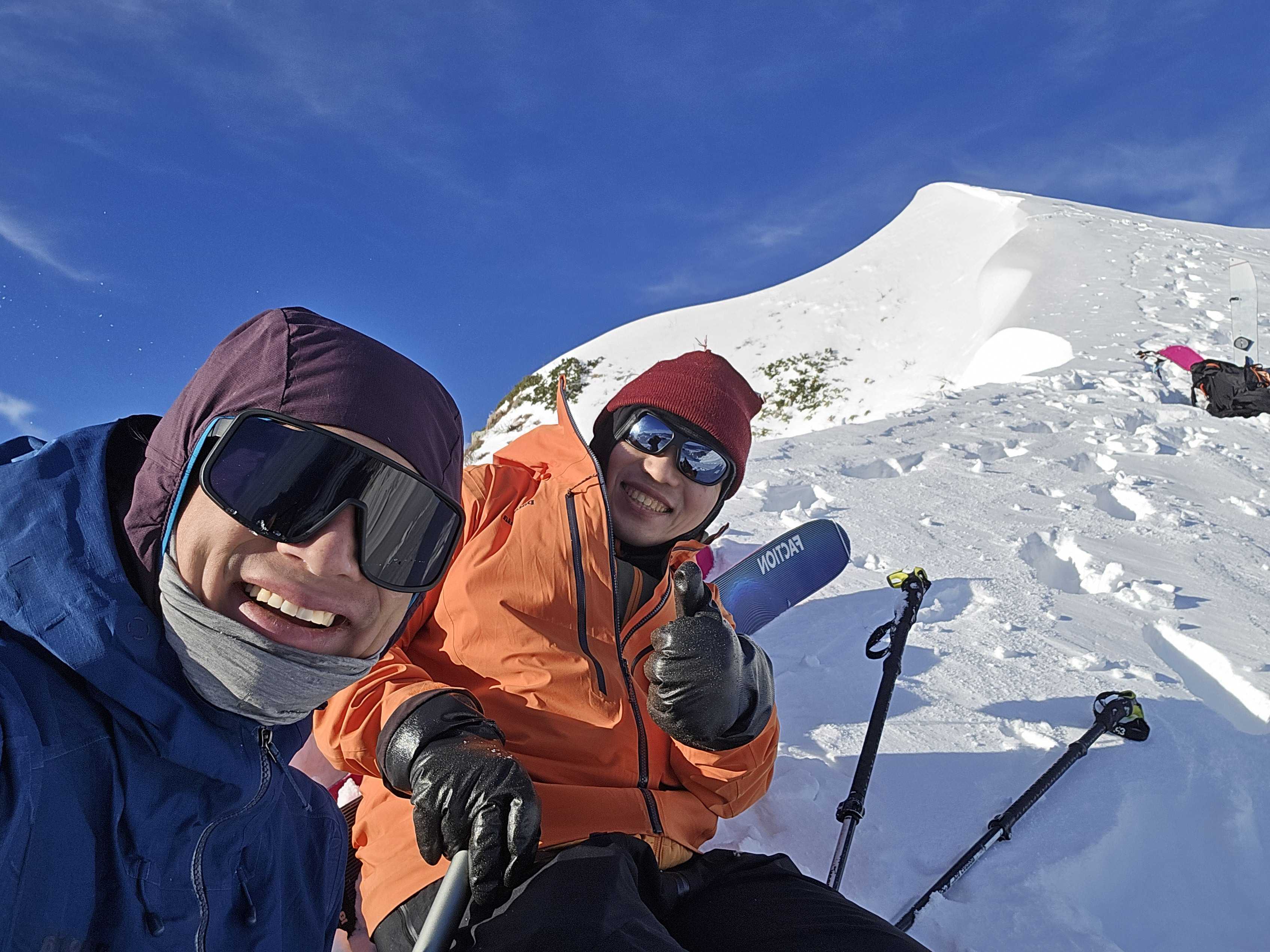 さて、自分の番となり様子を見ながら2ターンを刻む。スノーボーダーには快適な雪だ!テンションが一気に高まり奇声を上げながら思いっきり滑り出した。標高差600mを2分弱で駆け抜けkhanhと合流した。滑り終わるとスティープからの緊張と解放が堪らなく楽しく、二人でこれがあるから辞められない!と笑いあった。
