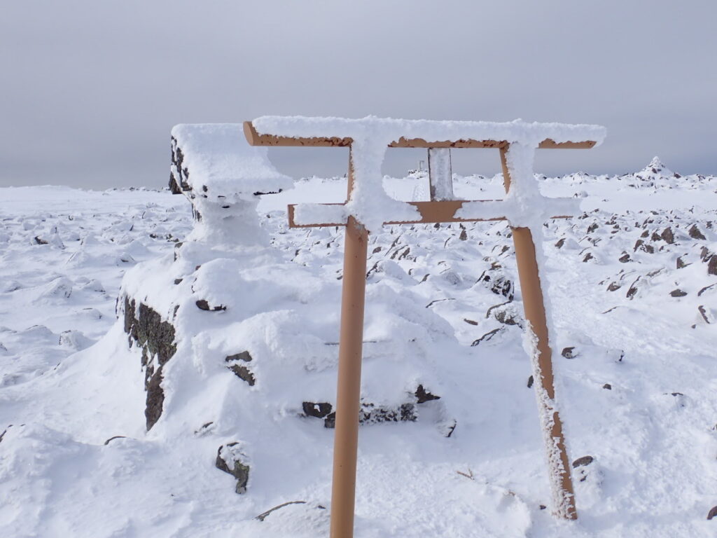 すでに日の出の時間帯ながら、曇りがちな平日ということもあってか女乃神の駐車場は閑散。高曇りで風も弱く、サクサクと山頂へ。