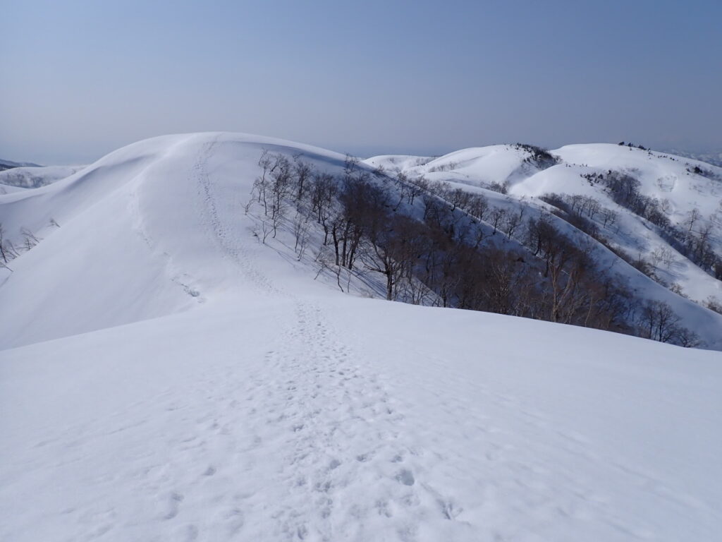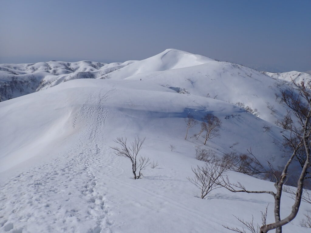 締まった雪面のトレースを辿るとしばらくで中金剛(金剛堂山本峰)。