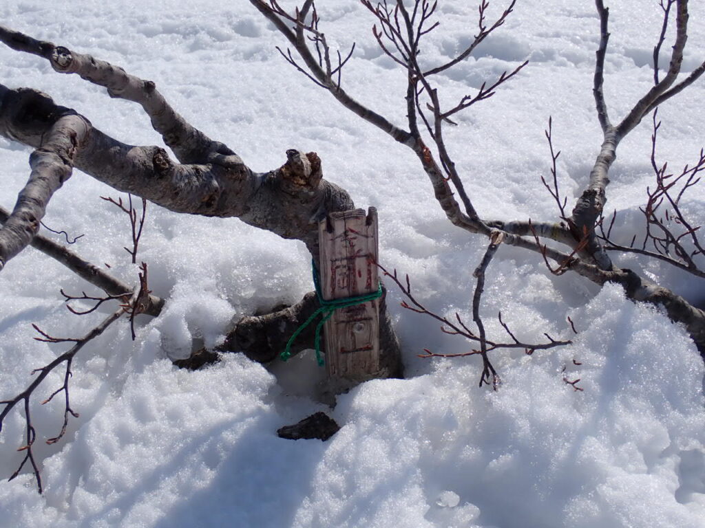 積雪はザラメ状となりまさに残雪期。ツリーホールも大きくなってきた。