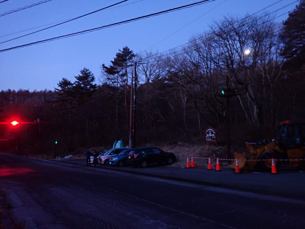 平日のせいか天女山登山口の駐車場は閑散。快晴の下、薄明りの中を登り出す。